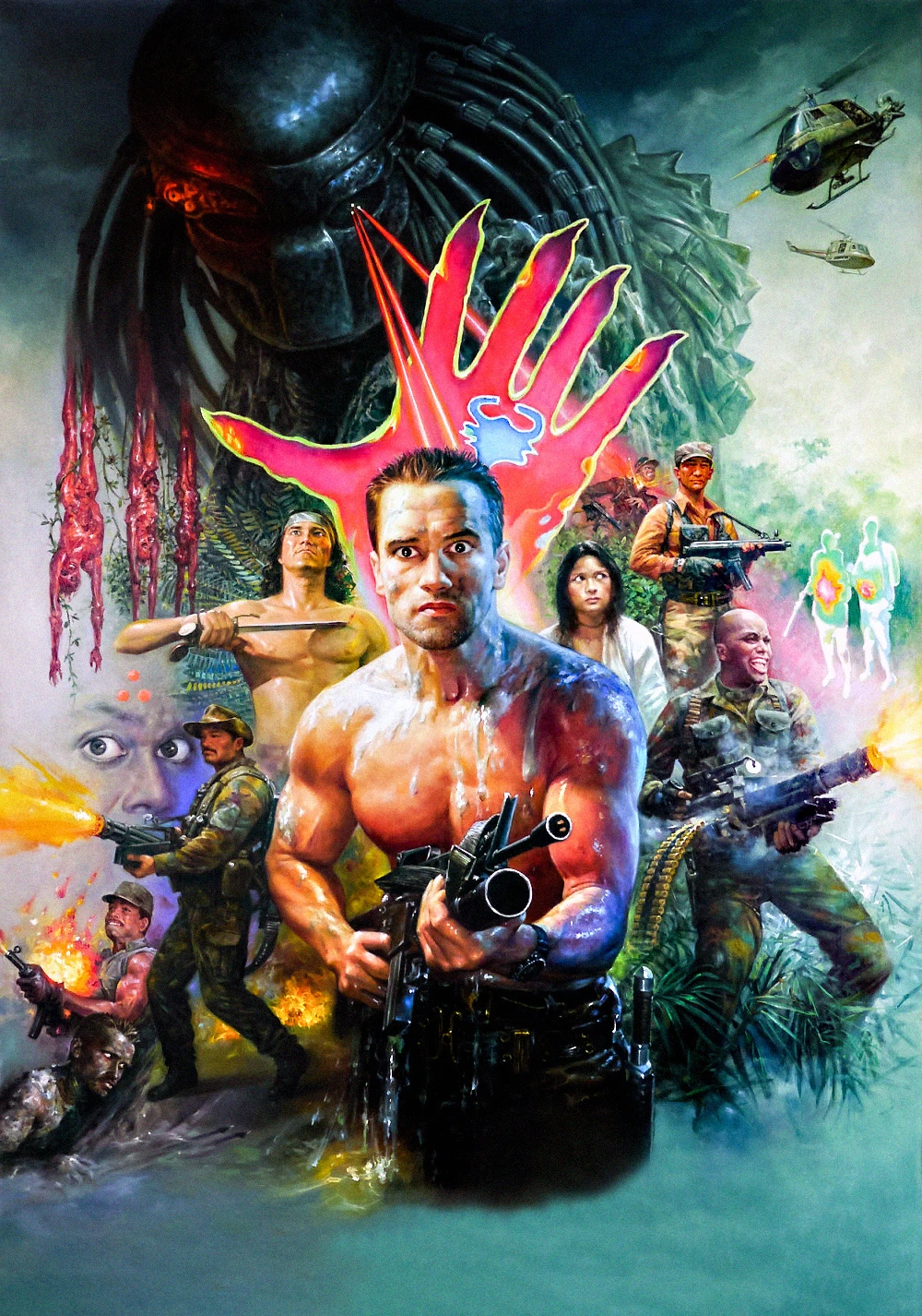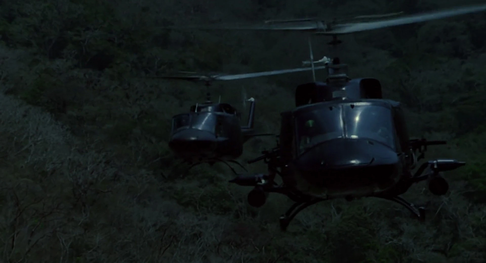 Choppers enter the Jungle with Dutch and his team.