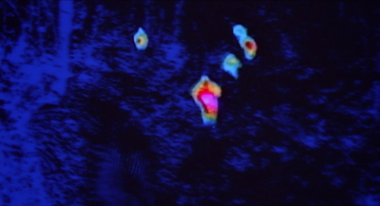6 soldiers of United States came from the North and follow the guerrilas, Dutch ask Dillon about that, Dillon tell it his another rebel patrol operate there all time, Dutch ordened Billy to look, the team get move, continue searching, Dutch ask Poncho about Billy what he got, Poncho say same, the group continue move, Billy does a pause to drink into a ram suddenly hear a noise on right up, Billy climb and approach, as very